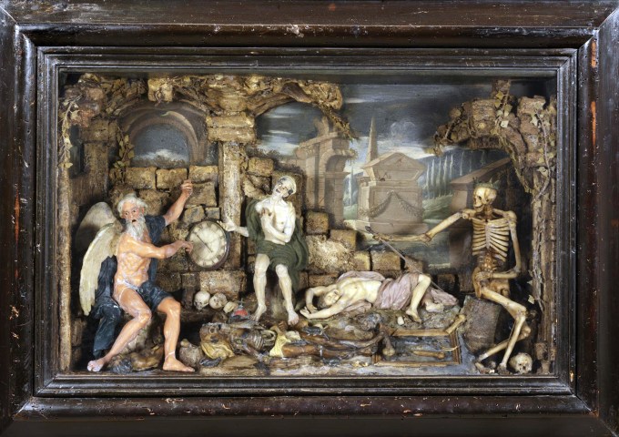 The present Jerome was likely executed at the time-of-or leading-up-to her more masterfully staged dioramas.8 It anticipates the more eloquent realizations of the winged Father Time depicted in her teatrini of an Allegory of Time in Cantanzaro and Time and Death at the V&A.