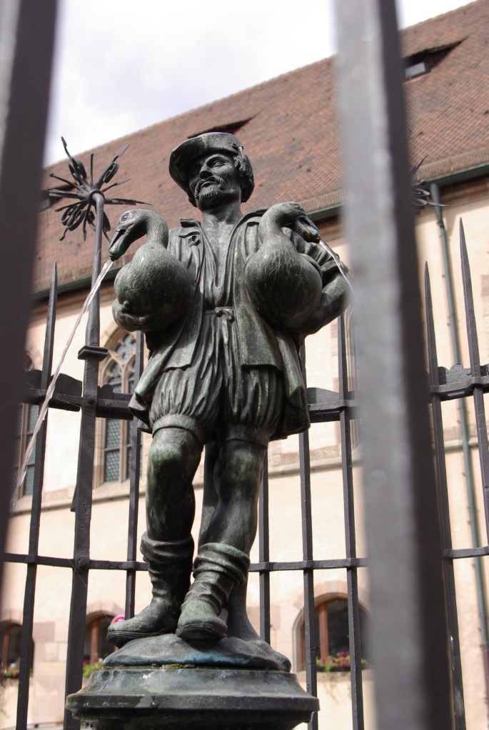 While the subject of the Gänsemännchenbrunnen may be identified, its commissioner and sculptor remain a mystery. It’s possible the fountain was commissioned collectively by various city council members though donors more commonly seem to have preferred direct patronage in edification of familial lines. Small fountains became a trend in Southern Germany during the 16th century and any of the wealthy families in the city would have obliged such a commission. Someone like Willibald Pirckheimer, whose home Melanchthon stayed at during his visits to Nuremberg, might be a reasonable candidate for such a commission.