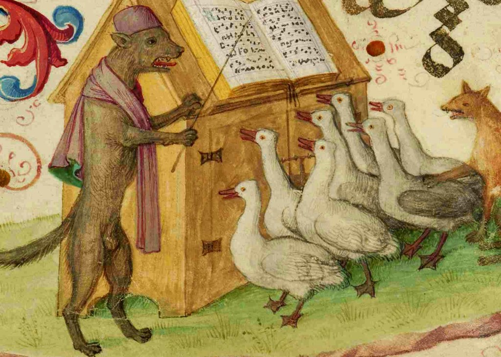 The inauguration of Nuremberg’s new academy took place on or close-to the feast day of the Ascension. Interestingly, the page of the Gradual featuring the hymns for the feast day of the Ascension depict a group of geese representing choir boys along its lower margin (Fig. 03).8 The Gradual was primarily used by clergymen and choir boys and it is quite likely the choir came to see themselves as geese, as they were depicted in the Gradual. In our modern era these imposing books are affectionately referred to as Das Gänsebuchs (The Geese Books).