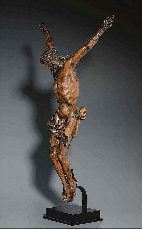 The Italianate face of Christ, integrated with a corpus of distinct South German or Bavarian influence, recalls the immediate impact of Balthasar Permoser, who was born in Bavaria, trained in Vienna and was active as an assistant to Giovanni Battista Foggini in Italy, before serving in Dresden under commission of Johann Georg III, Elector of Saxony. Permoser’s fourteen years spent in Italy introduced new ideas to his German peers, elevating his status as one of the foremost sculptors of the region.2