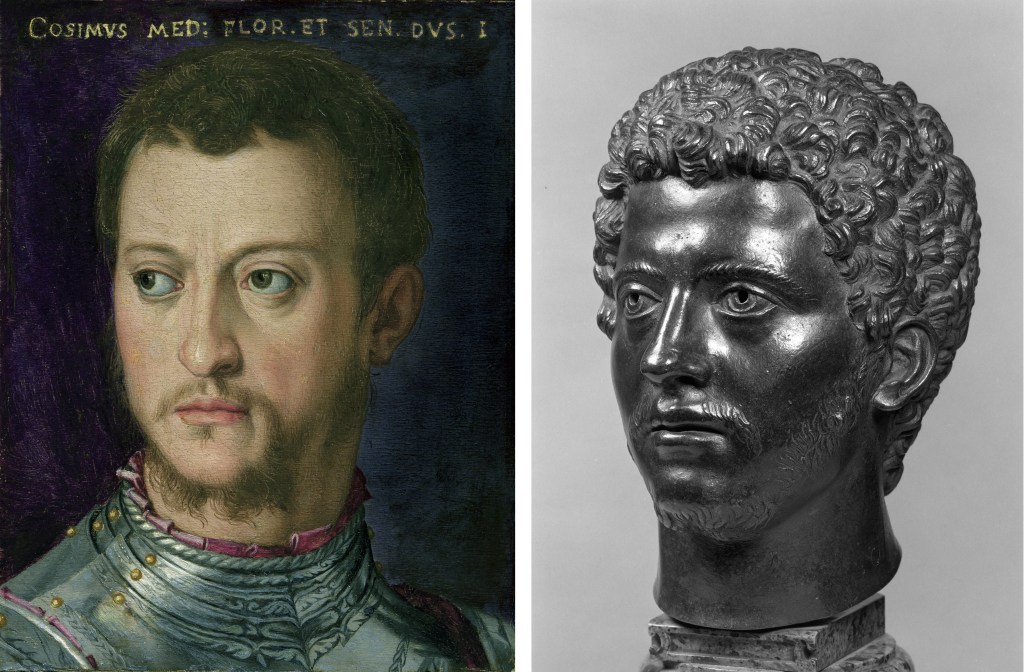An anonymous 16th century Florentine bronze bust (Fig. 01, right), tentatively considered an all’antica representation of a Roman emperor, at the Walters Art Museum (Baltimore, MD), might instead represent the portrait of a Medici family member.