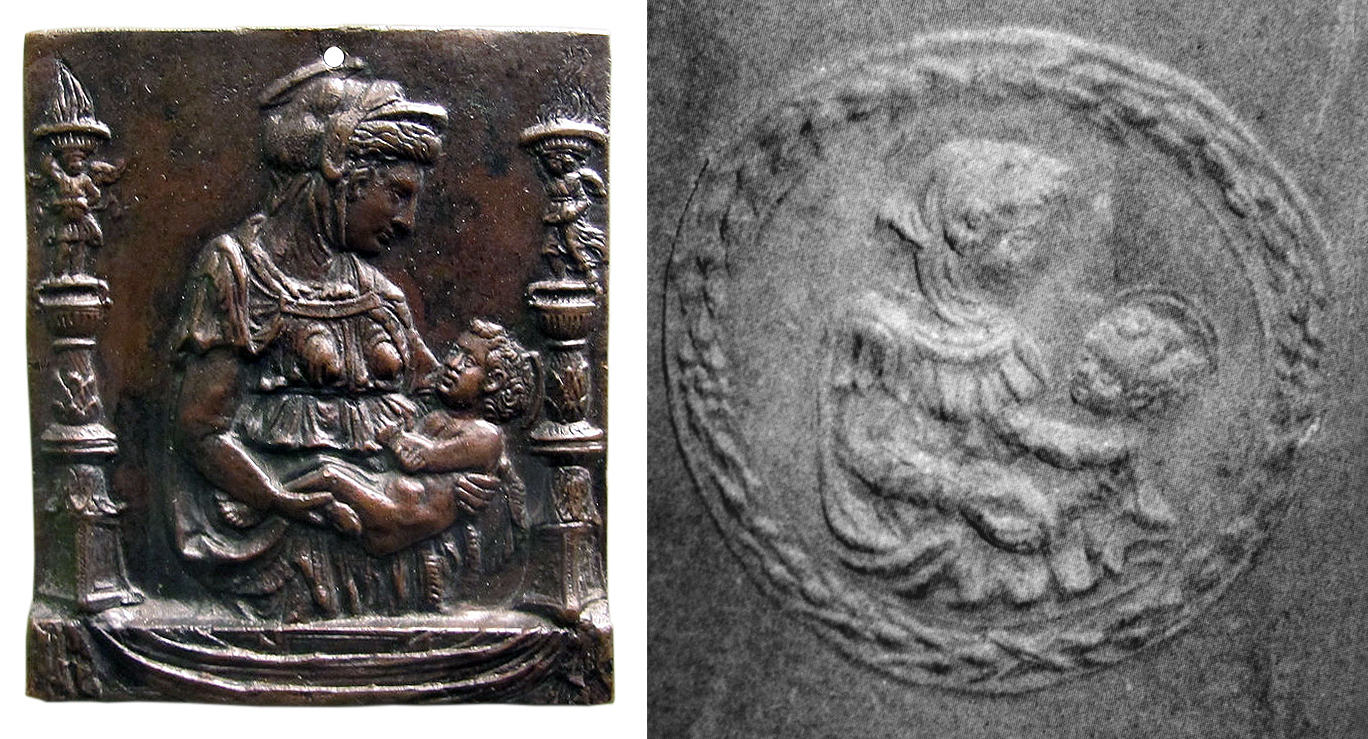18 While the Virgin and Child plaquette is more frequently considered mid-15th century in origin, Bertrand Bergbauer has noted two maiolica works made in Gubbio, ca. 1430-1440, which reproduce the plaquette’s motif, suggesting a date-of-origin during the second quarter of the fifteenth century. See Bertrand Bergbauer, Images en relief: la collection de plaquettes du Musée national de la Renaissance (Paris, France: Réunion des musées nationaux, 2009), pp. 13-14. For the maiolica examples see Louvre Inv. OA 1474 and Sothebys, auction cat. (London, UK, 6 December 2011), no. 1.