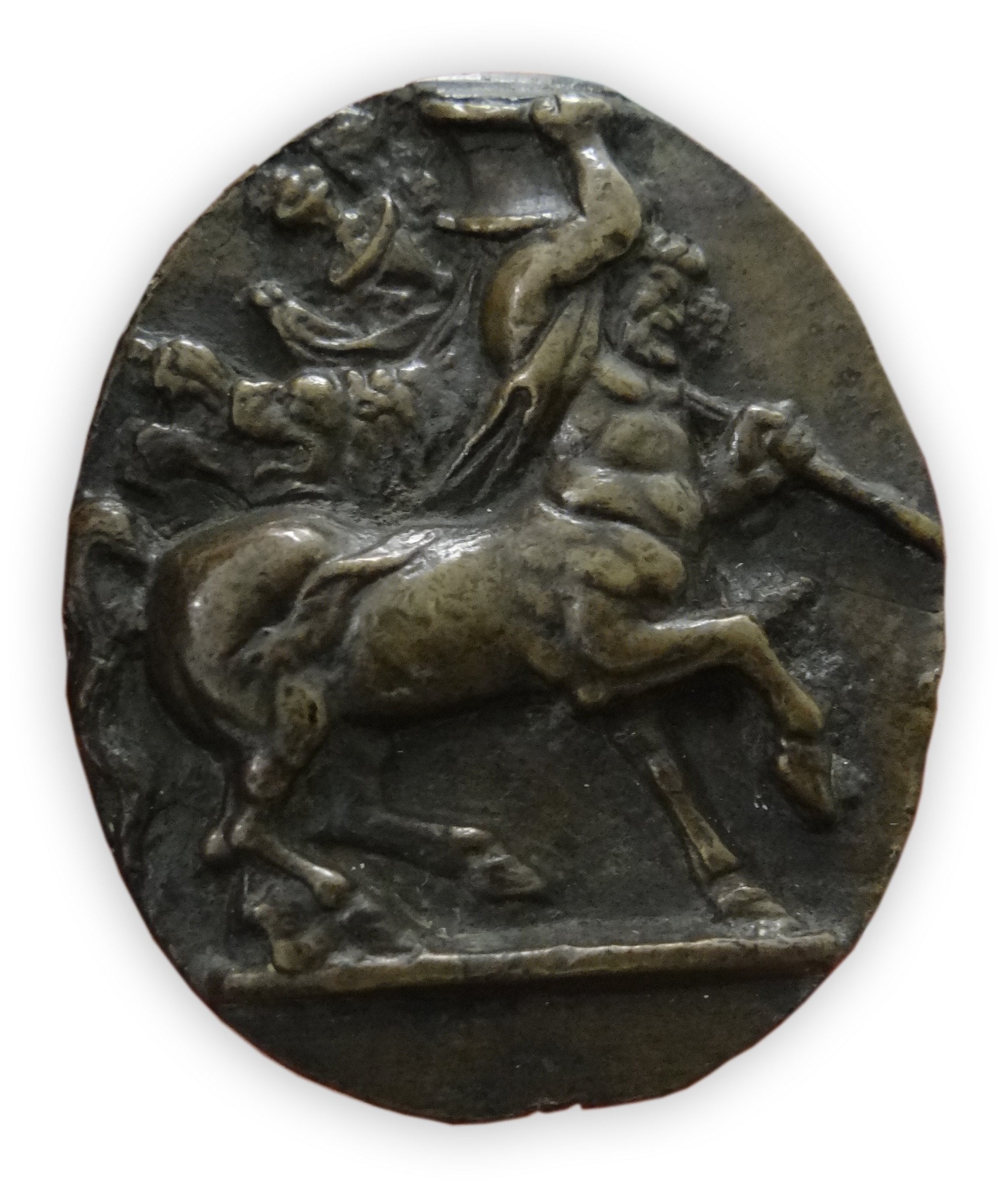 Donatello may not have directly involved himself in the serial production of plaquettes themed after the antique, though his incorporation of classical glyptics on sculpted works during his late Florentine period serve as a stimulus for their summary reproduction as independent reliefs by his collaborators. Donatello’s unique contribution is the stylistic and interpretive humanist approach he gave to them which aimed to meet the appetite of his Florentine benefactors.