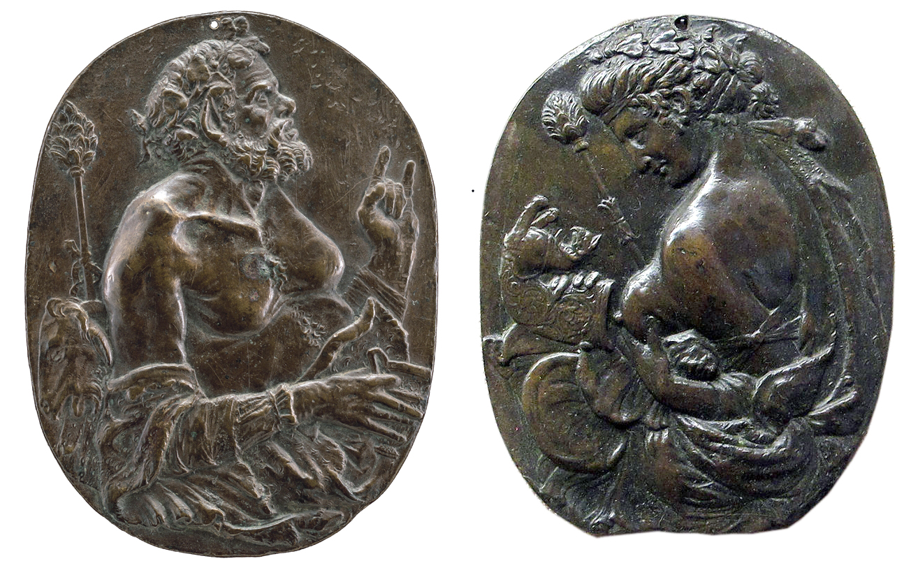 Fig. 4: Bronze cast after the ‘Felix Gem,’ cast in Rome probably before September 1464 (left; Ashmolean Museum, inv. WA2020.17); bronze cast after an amethyst with an allegorical figure of Abundance with the precious mount of Cardinal Pietro Barbo, probably cast in Rome before September 1464 (right; National Gallery of Art, DC, inv. 1957.14.169)