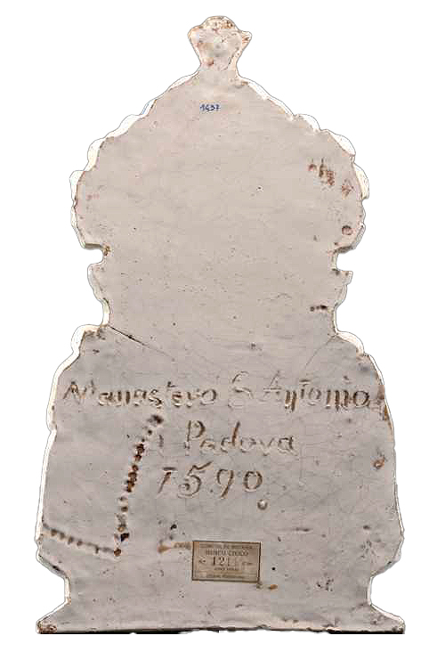 Fig 2: Reverse of a colored maiolica pax of the Virgin and Child, after Moderno (Museo Civico di Modena, inv. 1437)