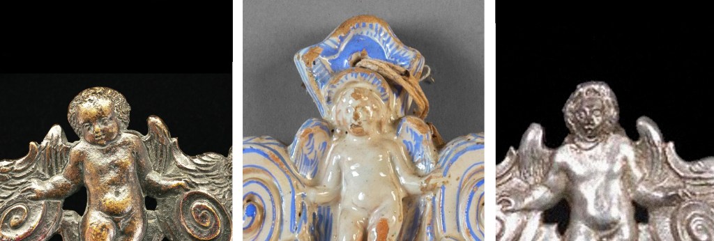 While the silver Zaccaria pax probably dates to the early part of the 17th century,11 it is unknown if the numbers on the back of the maiolica version reflect a presumed date for its origin (1614). That the silver Zaccaria pax lacks any hallmarks or inscribed dates it must therefore be presumed that the numerals used on the maiolica workshop’s reproductions of these paxes most probably reflect internal workshop catalog or inventory numbers.