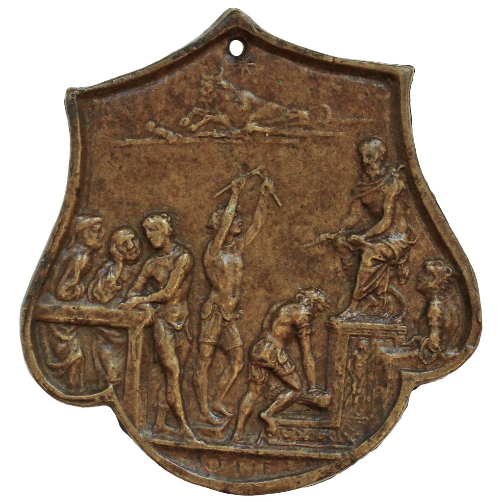 1 For the standard cataloging of this specific composition, see John Pope-Hennessy, Renaissance Bronzes from the Samuel H. Kress Collection: Reliefs, plaquettes, statuettes, utensils and mortars (London: Phaidon Press, 1965), 36, No. 110. The plaquette also appears on the reverse of a 1524 medal by Christoph Weiditz, demonstrating the wide resonance of the design.