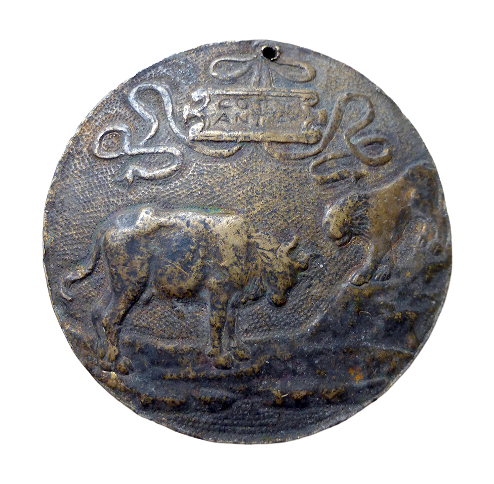 Fig. 1: Bronze plaquette depicting a Bolognese Allegory of Constancy against the Papal States, ca. 1502-06, by Giovanni Francesco Furnio (present author’s former collection)