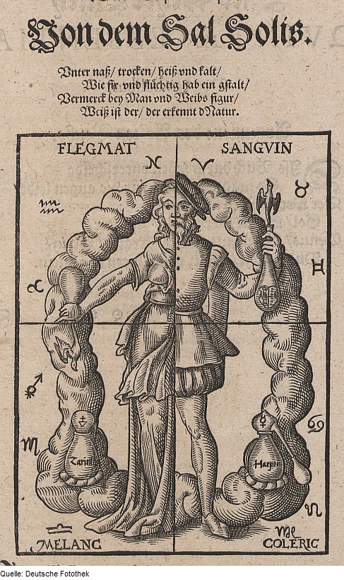 Fig. 11 – Woodcut illustration from Leonhart Thurneisser zum Thurn’s Quinta Essentia (1574) depicting the four humours.