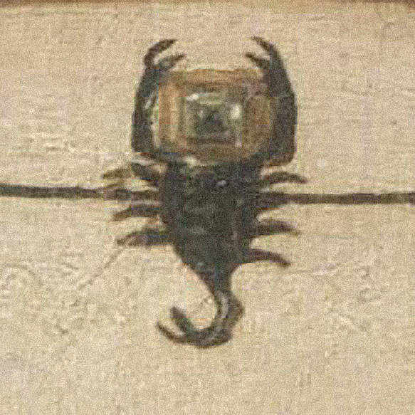 Fig. 4 – Detail of the scorpion monile from fig. 1. This active astro-medical talisman utilized melothesia to encourage fertility, functioning as a celestial apex in tandem with Elisabetta’s dress.